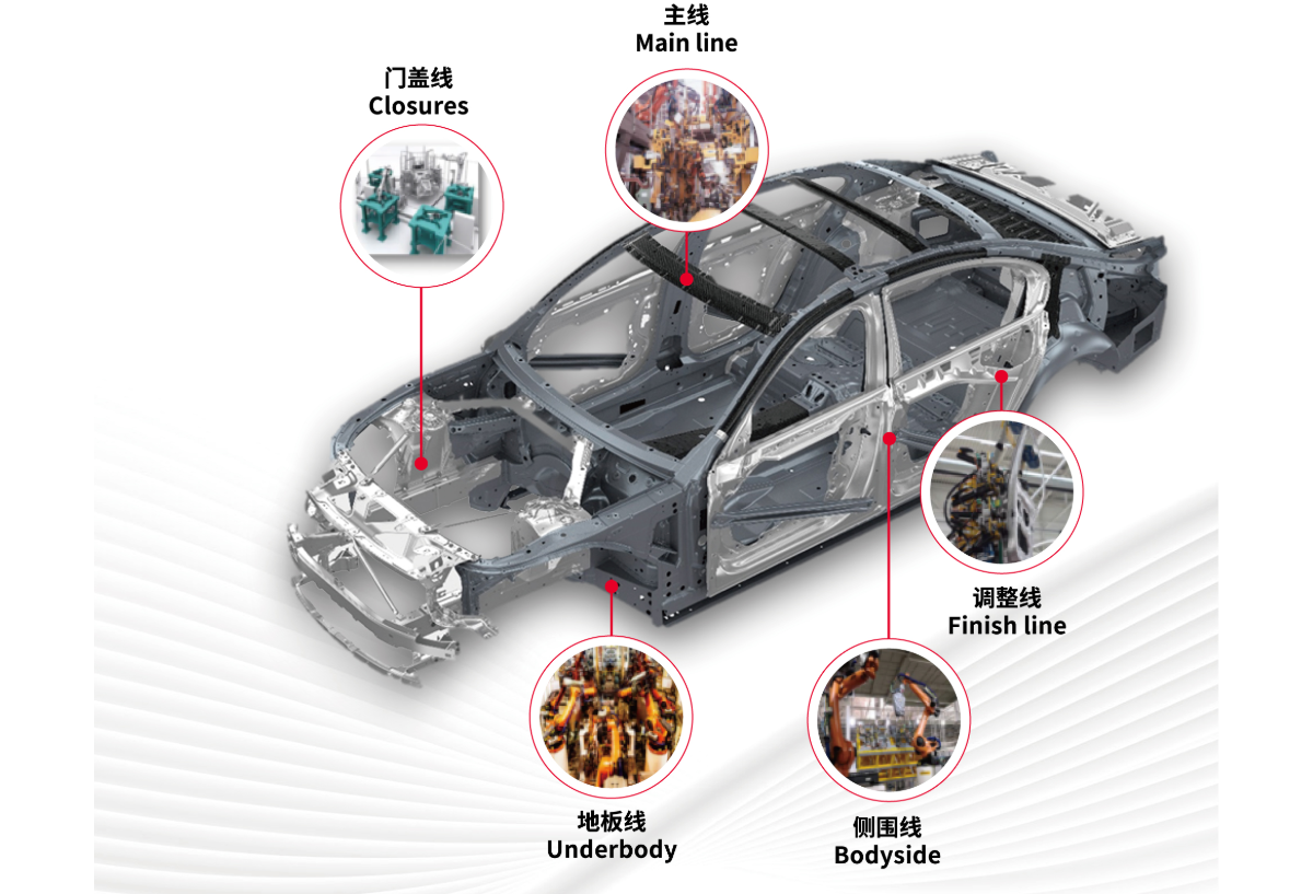 依托FFT在系統(tǒng)集成價(jià)值鏈各環(huán)節(jié)的自主知識(shí)產(chǎn)權(quán)及全球領(lǐng)先的柔性生產(chǎn)技術(shù),翌耀科技專注于汽車白車身自動(dòng)化集成與柔性生產(chǎn)裝配系統(tǒng),為全球知名汽車生產(chǎn)商及一級(jí)汽車零部件供應(yīng)商提供白車身生產(chǎn)線交鑰匙工程、定制化工程設(shè)計(jì)及柔性智能技術(shù)支持。